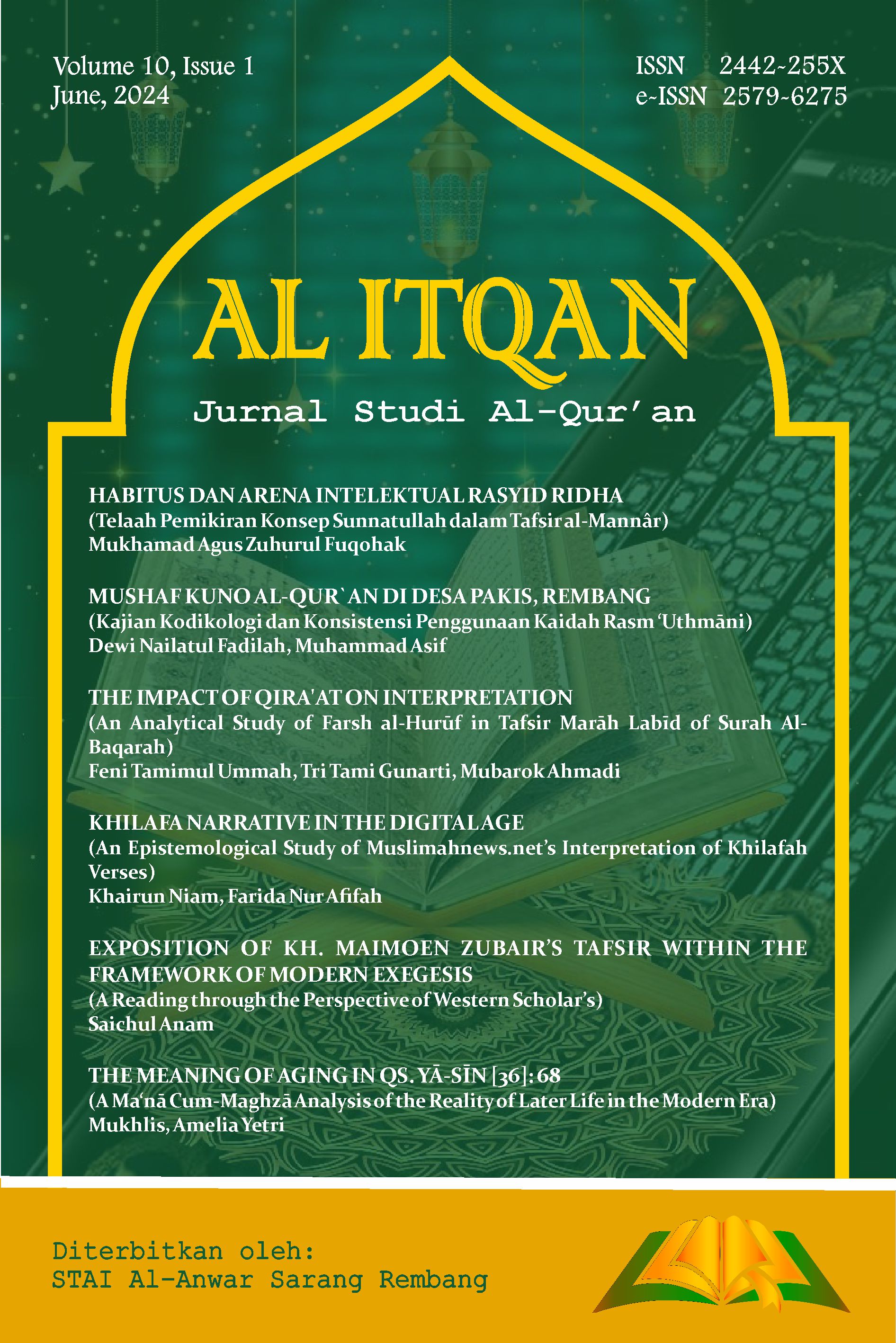 Lestari, Lenni. “Mushaf Al-Qur`an Nusantara: Perpaduan Islam dan Budaya Lokal”. Jurnal At-Tibyan 1, no.1 ( 2016). https://journal.iainlangsa.ac.id/index.php/tibyan/article/view/42.